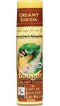 Cocoa Butter Lip Balm Speak softly & carry a bigger stick! A delectable selection of creamy Cocoa Butter Lip Balms in a larger .25oz stick with a magical Badger on the label! These dreamy new balms feature a rich base of certified organic cocoa butter, certified organic extra virgin olive oil, golden yellow beeswax and CO2 extracts of Seabuckthorn Berry and Rose Hip – natural, plant-based anti-oxidants. They also contain an organic Aloe Vera Extract for added dry weather protection. The cocoa butter helps the staying power of the balm, keeping lips moisturized and soothed for a good, long time. Thick, creamy, and long lasting. Base Ingredients: Organic Extra Virgin Olive Oil, Organic Cocoa Butter, Natural Golden Yellow Beeswax, Castor Bean Oil, Organic Extract of Aloe Vera, and CO2 Extracts of Rose Hip, & Seabuckthorn Berry. Creamy Cocoa: Pure & Simple. Just our fabulous base Read more...