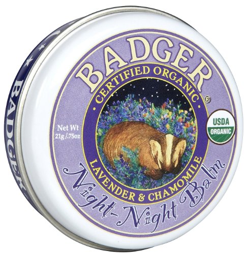 Badger Balm Night Night Balm - 0.75 oz Now USDA Certified Organic! A natural sleep tight balm for kids and toddlers.Night-Night Balm is made to help ease younger minds into the magical realm of the sleep world. For this special child-friendly formula, we chose essential oils that are known to be good for children and are also known to promote feelings of safety, cheerfulness, reverence and calm. Chamomile helps children to calm down and unwind from nighttime activities. Lavender helps children to relax and feel soothed, while Sandalwood instills a feeling of reverence. Mandarin & Spearmint help kids feel safe and uplifted. Rub a little onto temples, neck, lips, wrists or anywhere that will help to diffuse the wonderful aroma into the air around the child. A safe and natural sleep aid for children! Ingredients: *Extra Virgin Olive Oil, *Golden Yellow Beeswax, *Castor Bean Oil, *Aloe Extract, Essential Oils of *Lavender, Sandalwood, *Mandarin, *Spearmint, and *Roman Chamomile. * = Certified Organic Read more...