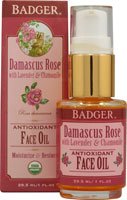 hr { background-color:#000;margin:0px; }Damascus Rose Face OilMoisturize & Restore. Honor your beautifully evolving body with this elegant blend of naturally restorative oils. We've combined Organic Jojoba, Baobab & Pomegranate oils to create a light, super-absorbent and highly nourishing face serum. Baobab is especially superb for skin conditioning, abundant with vitamins, minerals, and omega-3, -6, and -9 fatty acids, which are essential in skin regeneration and detoxification. Organic Rosehip, Calendula and Seabuckthorn - AKA "the Three Sisters" - contain powerful antioxidants for radiant skin. Divinely scented with precious Organic Rose Oil and a supporting cast of true essential oils of Maillette Lavender and Roman Chamomile - some of the most profoundly soothing floral essences on Earth. A couple of drops of Badger's Rose Face Oil will soothe, moisturize and noticeably improve the texture of the skin.Suggested Use As a dietary supplement Apply daily as an intensive moisturizing facial treatment after shower of before bed. Ideal for dry, mature, or combination skin. Or as directed by your healthcare professional.Warnings: Keep out of reach of children. As with all dietary supplements, consult your healthcare professional before use. See product label for more information. Read more...
