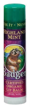 Highland Mint Lip Balm by Badger 0.15 oz Balm HIGHLAND MINT Imagine walking the Scottish Highlands in fields replete with Peppermint Spearmint and Lavender. Add a dash of Rose Hip and Sweet Birch and there you have it. Take a deep breath... Minty flavor and highly refreshing. Quickens yet calms the mind. Dear Badgers Your balms are bodacious I discovered your Highland Mint at my local grocery store last August and I haven't been without it since I've taken it with me everywhere and I love it Recently I went on vacation for a few weeks and my Highland Mint went all the way from Austin Texas to Brighton England where the cold and rain chapped my lips and hands. Guess what was there to save my hands and skin My Badger Balm Then from England it went with me to Estes Park Colorado where the sun and dry air attacked once more. Guess what I had with me Yup. Badger Balm again So what did I buy at a gift shop since I love my Highland Mint so much More Badger Balm. The Ginger Lemon Balm is almo Read more...